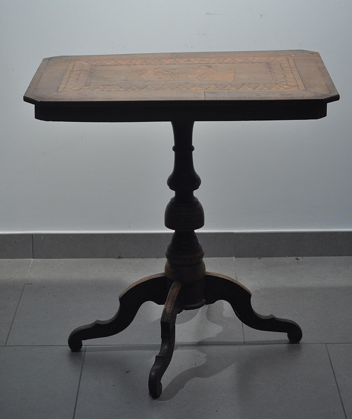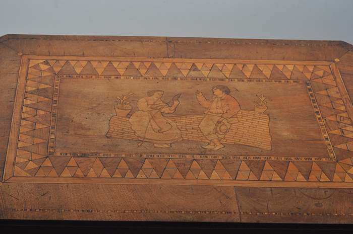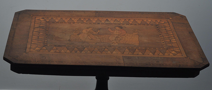 Tavolino rettangolare sorrentino con intarsio a due figure, fine '800 cm 70x46, h cm 70