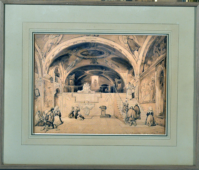 Vianelli Achille (Porto Maurizio, IM 1803 - Benevento 1894) San Benedetto Subiaco china e seppia su carta, cm 26x34 firmato, dato e iscritto: San Benedetto Subiaco 1839 Vianelli