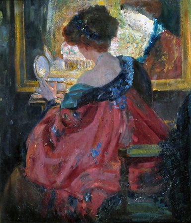 Caputo Ulisse (Salerno 1872 - Parigi 1948) Al teatro olio su tavola, cm 41x33 firmato in basso a sinistra: U. Caputo