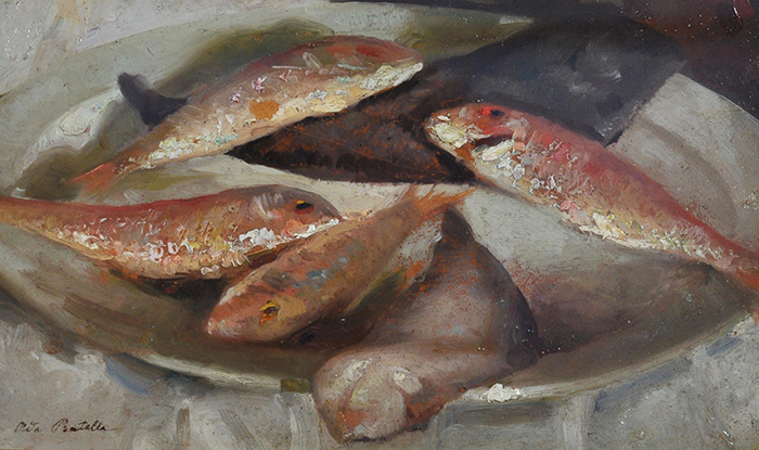 Pratella Ada (Napoli 1901 - 1929) Natura morta olio su cartone, cm 18x30 firmato in basso a sinistra: Ada Pratella
