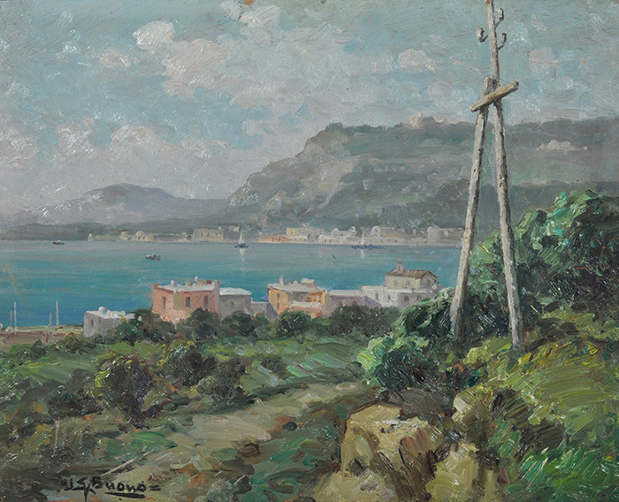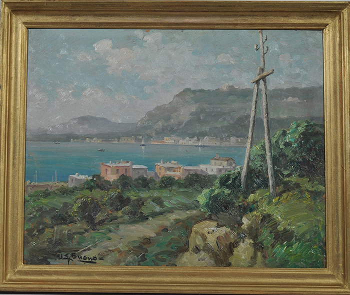 Buono Leon Giuseppe (Pozzuoli, NA 1887 - 1975) Costiera calabra olio su masonite, cm 50x40 firmato in basso a sinistra: L. G. Buono