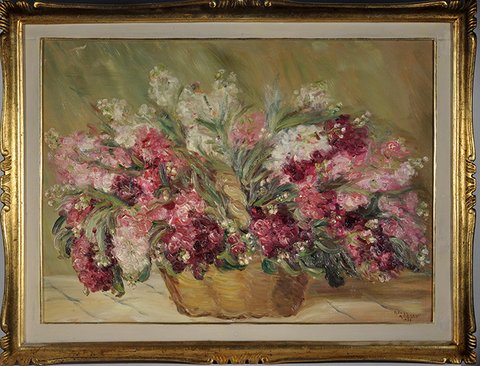 Altarelli Adele ( Milano 1910 - Napoli ? ) Natura morta olio su tavola cm 55x76 firmato e datato in basso a destra: Adele Altarelli 1953