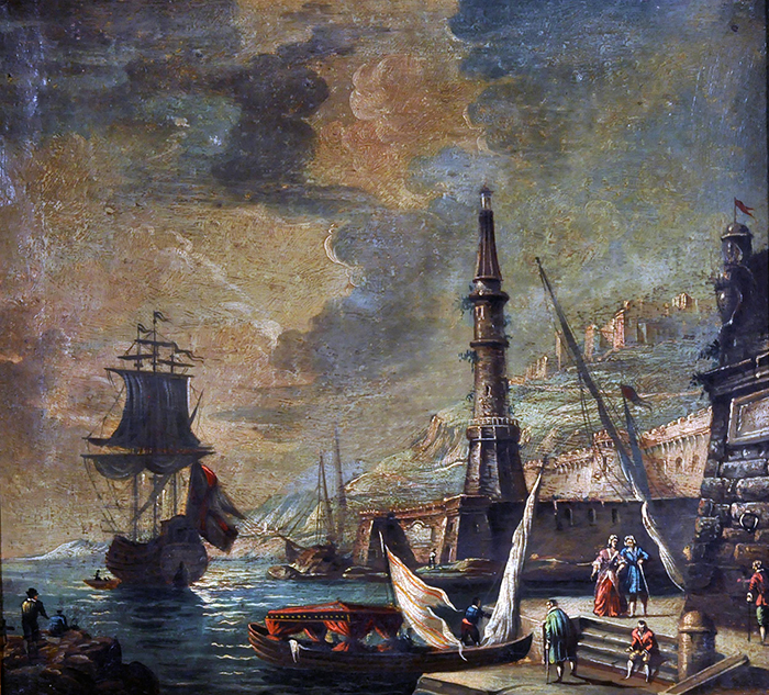 Scuola Veneziana Al porto olio su tela, cm 46x47