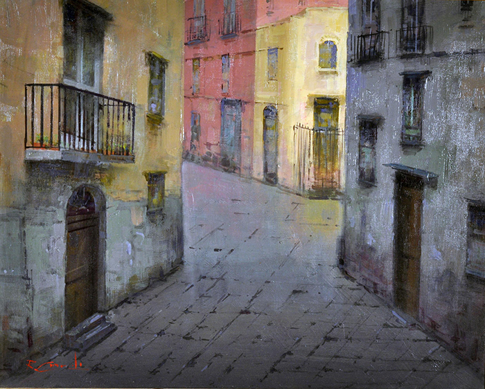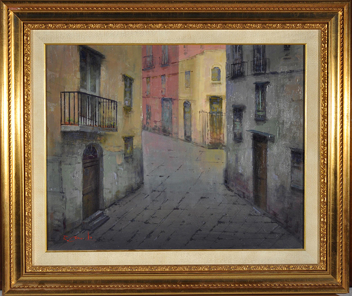Criscuolo Renato (Napoli - 1954) Vico San Filippo Neri olio su tela, cm 50x40 firmato in basso a sinistra R. Criscuolo
