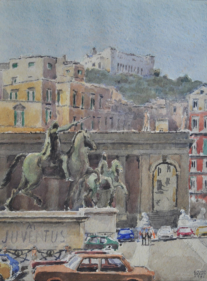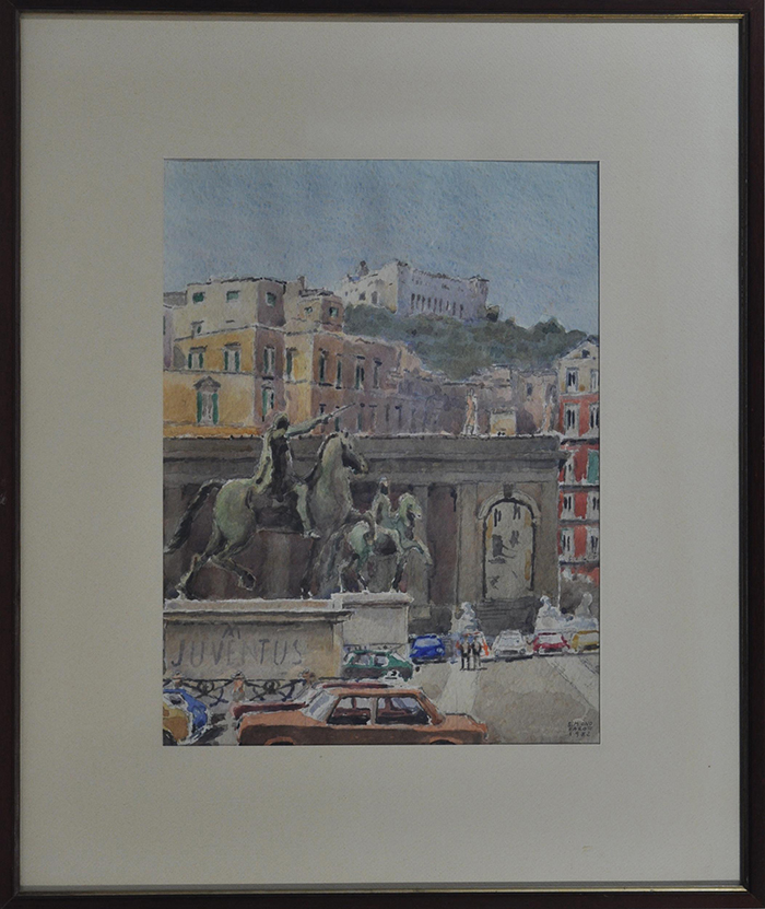 Onofaro Salvatore Mario (Roma 1903 - Napoli 1995) Vista dal Plebiscito acquerello su carta, cm 39x29 firmato e datato in basso a destra: S. M. Onofaro 1982