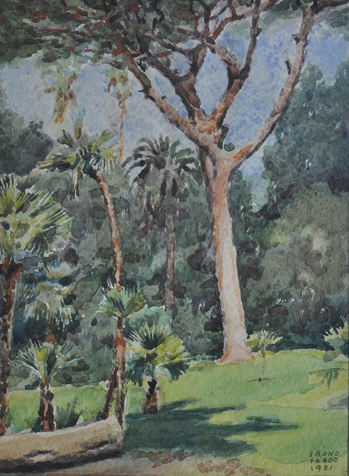 Onofaro Salvatore Mario (Roma 1903 - Napoli 1995) Vecchio pino acquerello su carta, cm 31x22,5 firmato e datato in basso a destra: S. M. Onofaro 1981