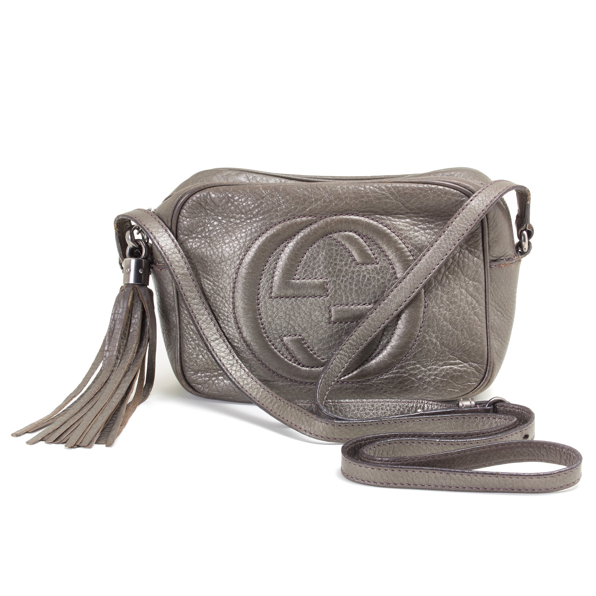 Gucci Soho Disco bronze effect leather shoulder bag. Beige canvas lining. Original dustbag included. Fair conditions.