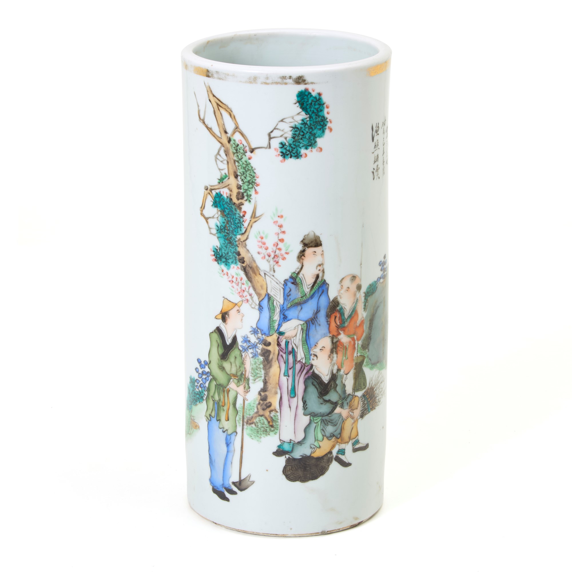 Vaso in porcellana Famiglia rosa decorato con figure di saggi e accoliti. Cina, fine dinastia Qing. Condizioni molto buone.