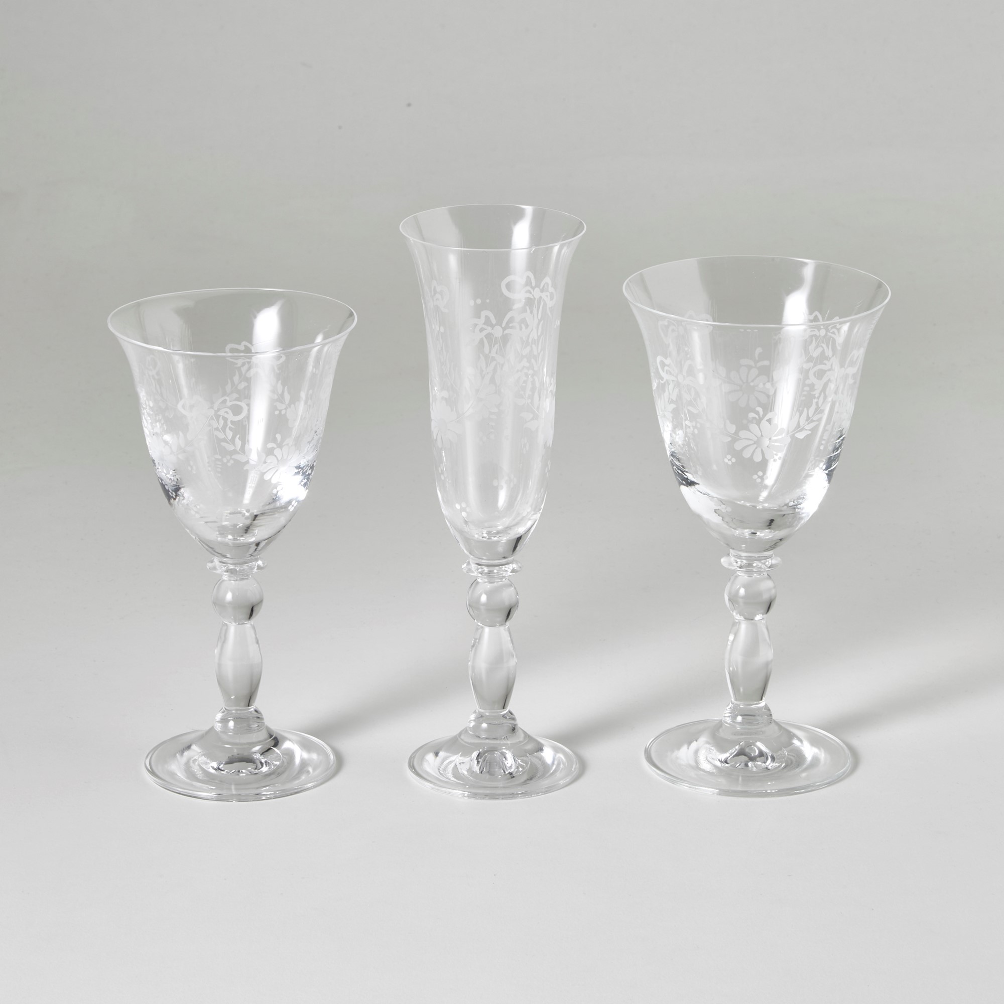 Servizio di 10 bicchieri in cristallo composto da flutes, calici d'acqua e da vino. Ottime condizioni.