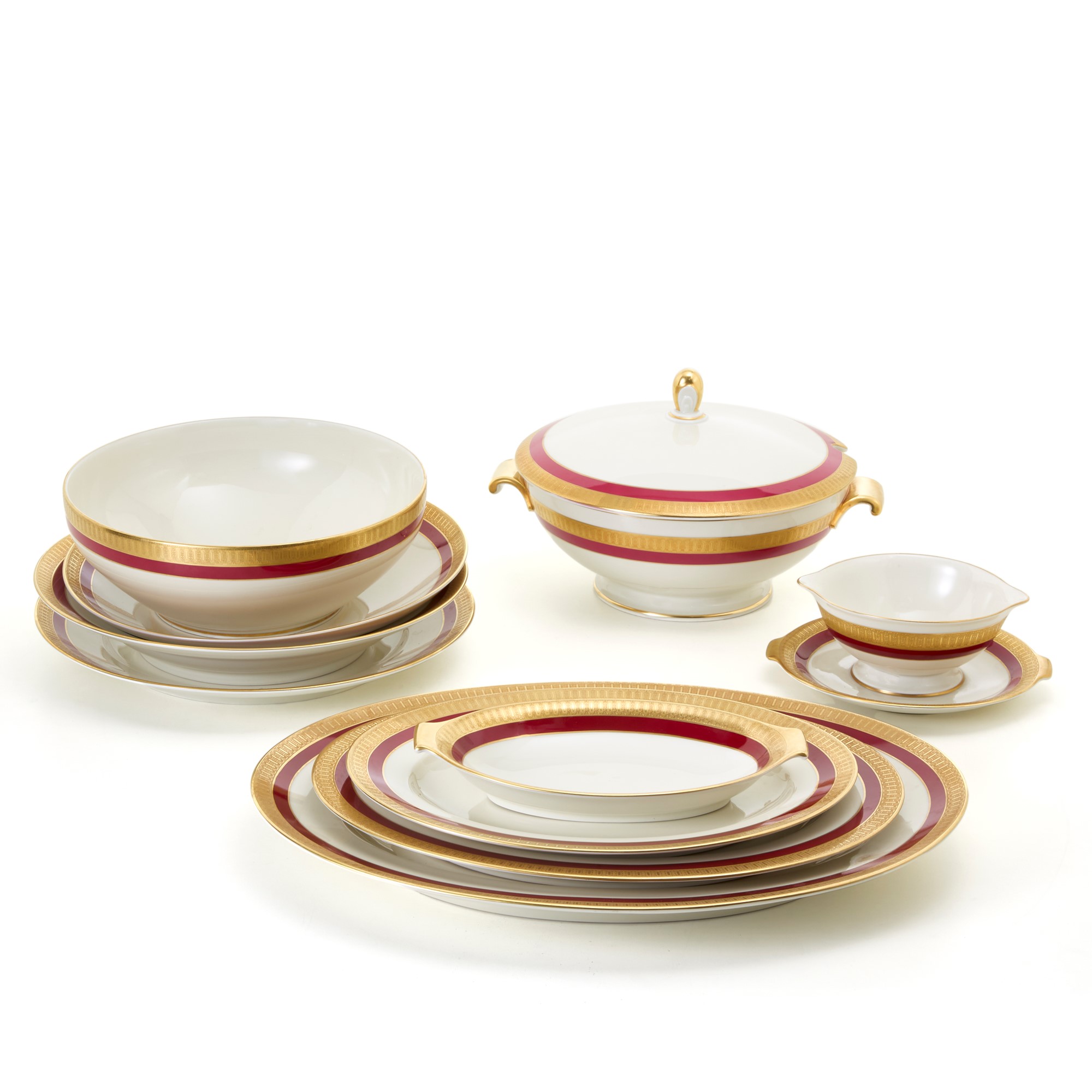 Servizio Rosenthal in porcellana composto da 36 piatti piani, 12 fondine, 24 piattini frutta, 10 piatti da portata, una zuppiera, un'insalatiera e una salsiera.