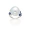 Anello in oro bianco 18 Kt con perla bianca coltivata di circa 17x15 mm, rifinito con diamanti rotondi per complessivi 0,44 ct e zaffiri rotondi mezza rosetta per complessivi 1,43 ct.