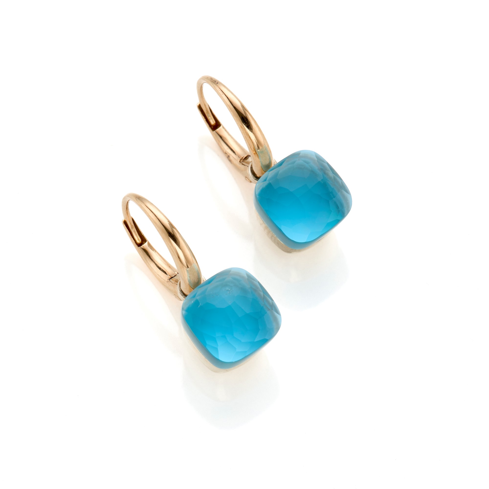 Pomellato Nudo Classic collection earrings in 18 Kt yellow and white gold with faceted topazes.