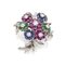 Spilla floreale in oro bianco 18 Kt con diamanti rotondi per complessivi circa 1 ct rifinita con rubini, zaffiri e smeraldi rotondi.