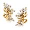 Pair of 18 Kt yellow and white gold bow brooches with white, grey and gold round cultured pearls and round diamonds total approx. 1,80 ct.
