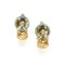 Orecchini a clip Bulgari in oro giallo 18 Kt con boules in quarzo azzurro di circa 13 mm e diamante rotondo.