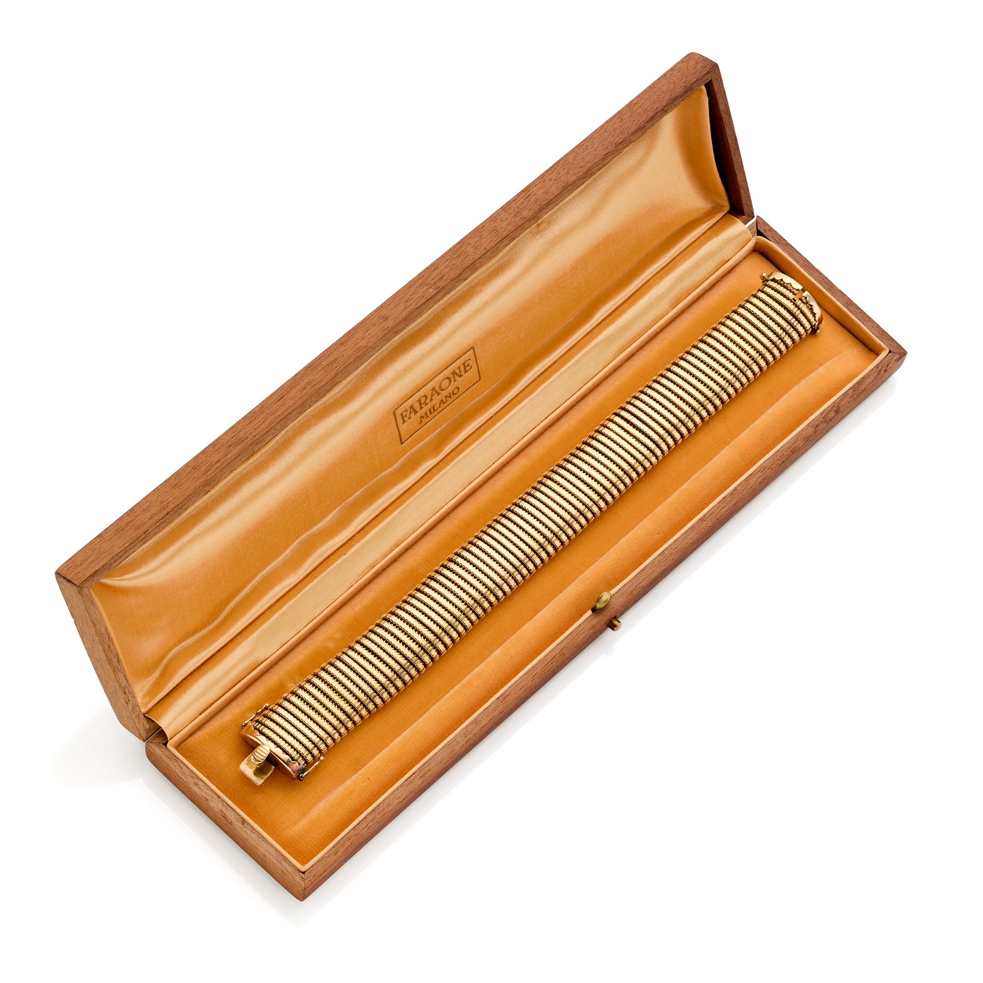 18 Kt yellow gold modular band bracelet, within Faraone box.