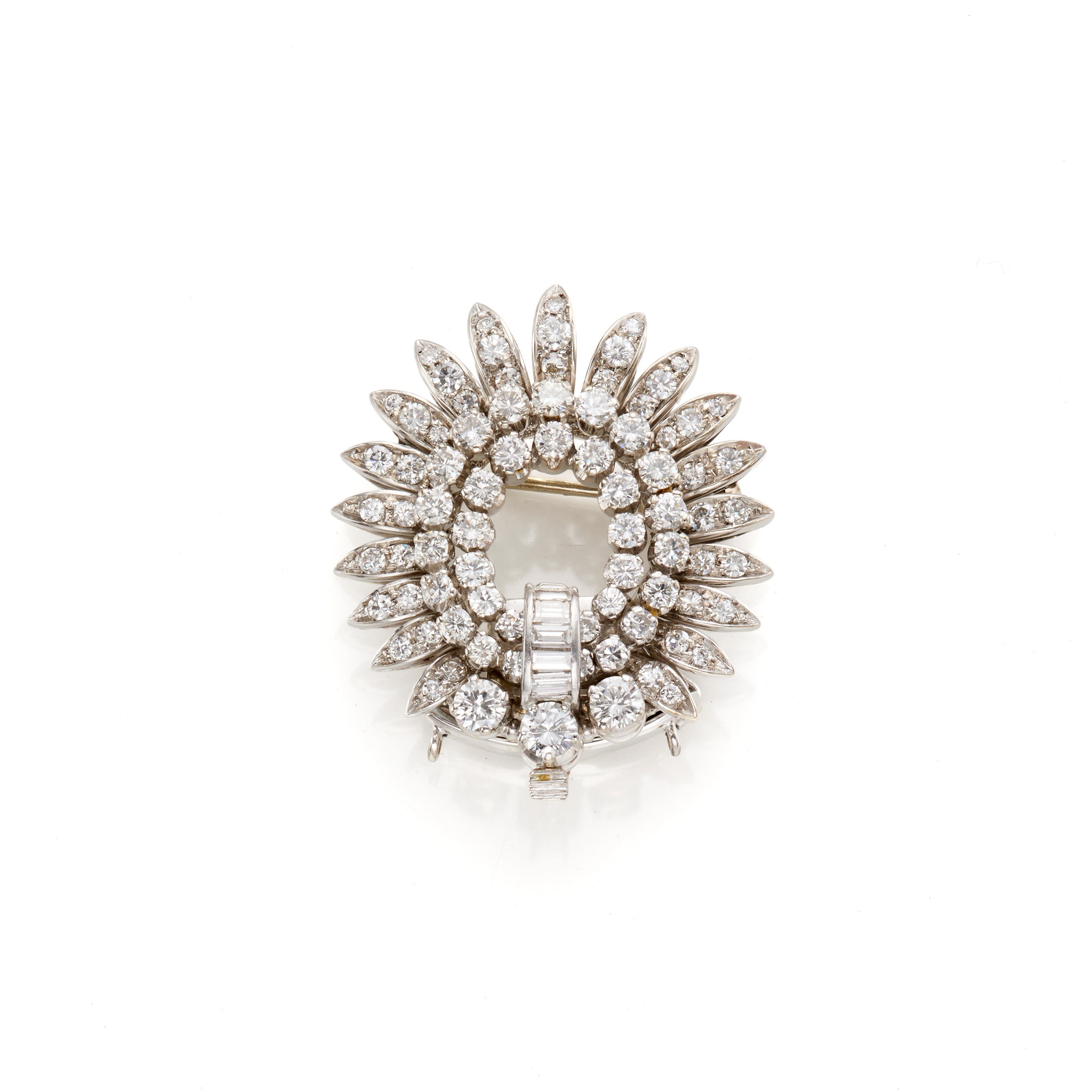 Spilla/chiusura in oro bianco 18 Kt con diamanti rotondi per complessivi circa 2,60 ct.