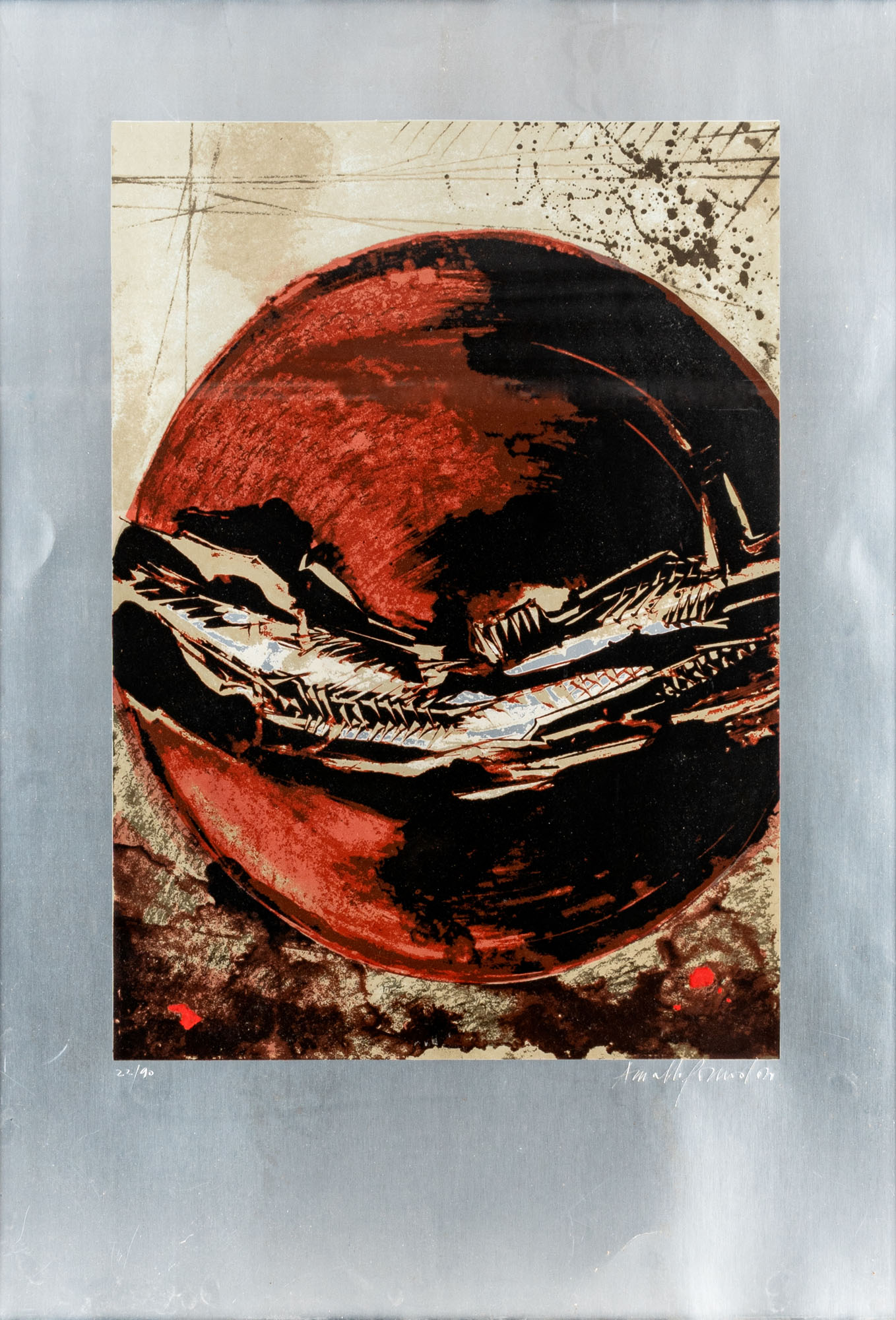 ARNALDO POMODORO(1926)Senza titolo1964 - 1974Serigrafia su lamina di alluminio, es. 22/90, su una tiratura complessiva di 90 esemplari in numeri arabi, 20 esemplari in numeri arabi e prove d'artista, edizioni ARS'D, Milano100 x 70 cmFirmata in basso a destra e numerata in basso a sinistraPROVENIENZA:Collezione privata, RomaBIBLIOGRAFIA:Catalogue Raisonné Online di Arnaldo Pomodoro, n. GR33 (https://www.arnaldopomodoro.it/catalogue_raisonne/artworks/detail/3413/gag01j4246-senza-titolo/)