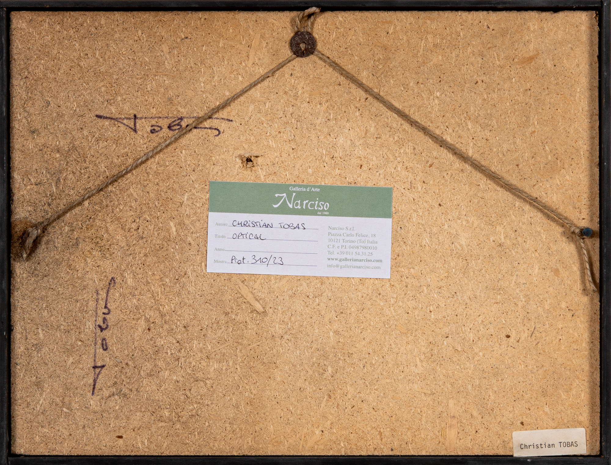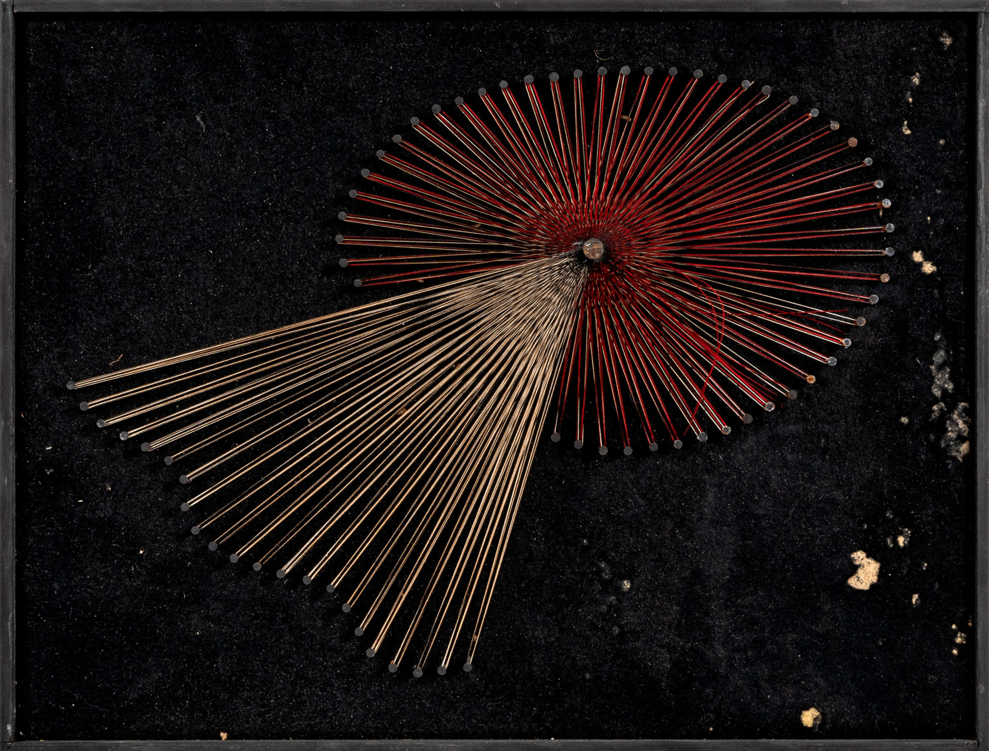 TOBAS(1944)OpticalScultura composta da chiodi e fili su tavola24,5 x 32 cmFirma al retroPROVENIENZA:Galleria d'Arte Narciso, Torino (etichetta al retro)Collezione privata, Torino
