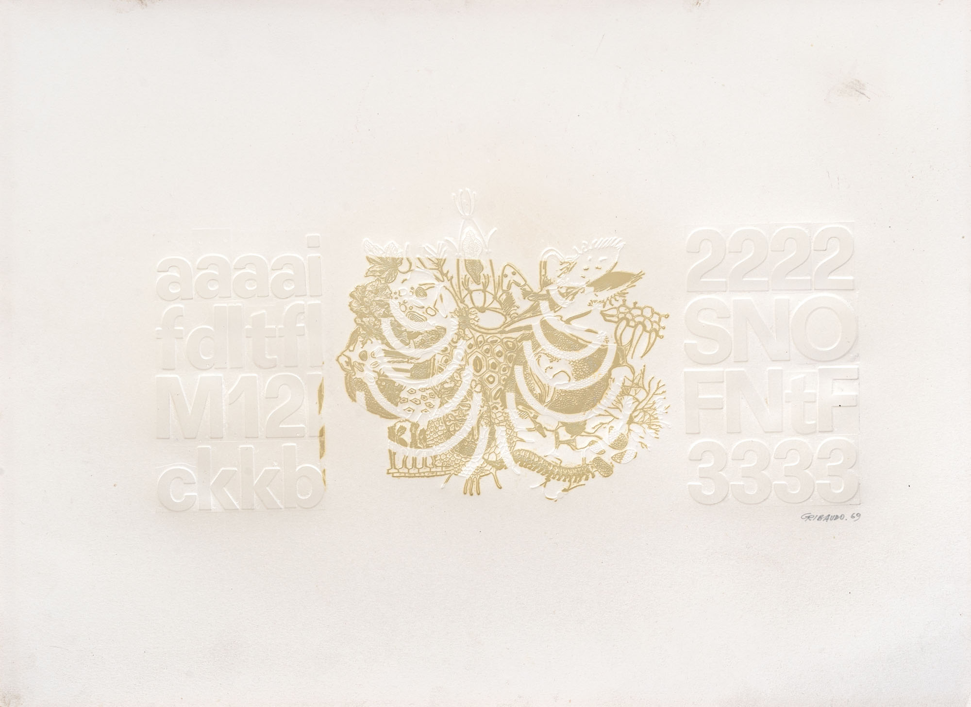 EZIO GRIBAUDO(1929 - 2022)Logogrifo1969Impressione su carta44 x 60 cmFirmata e datata in basso a destraPROVENIENZA:Galleria d'Arte Narciso, Torino (etichetta al retro)Collezione privata, Torino