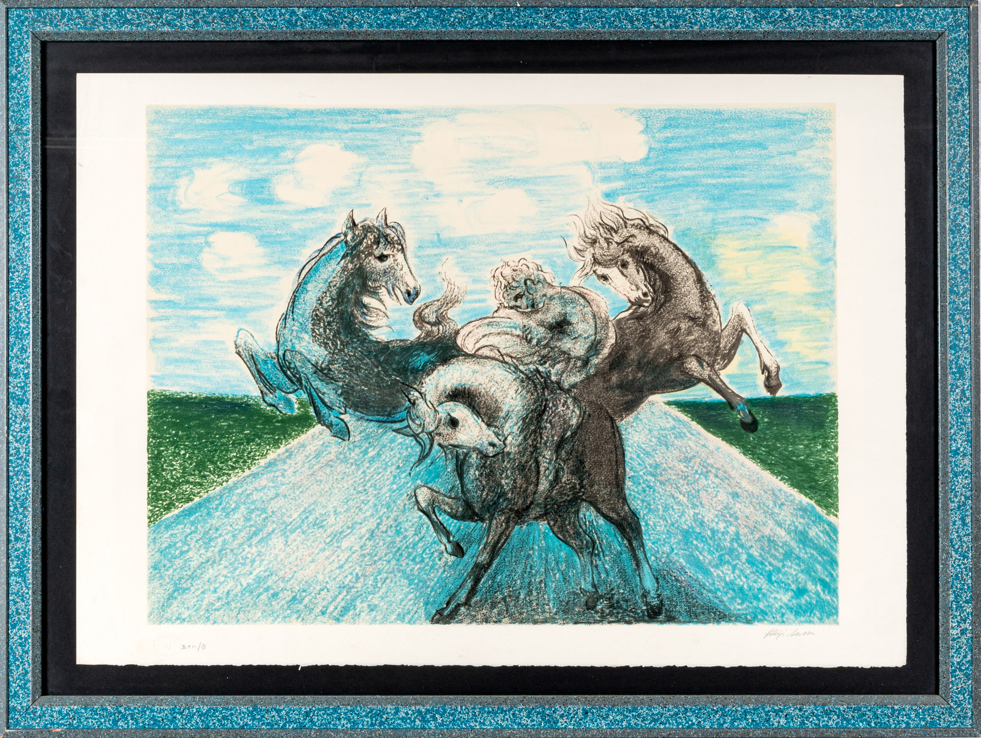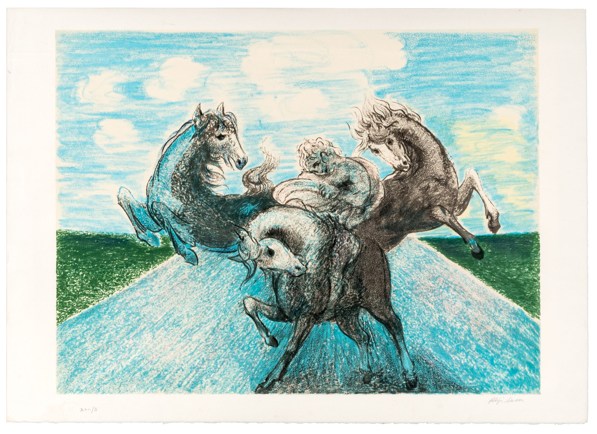 ALIGI SASSU(1912 - 2000)Senza titoloLitografia, es. multiplo, edizione Mourlot Paris (timbro a secco)53,5 x 75,5 cmFirmata a matita in basso a destra e numerata in basso a sinistraPROVENIENZA:Collezione privata, Milano