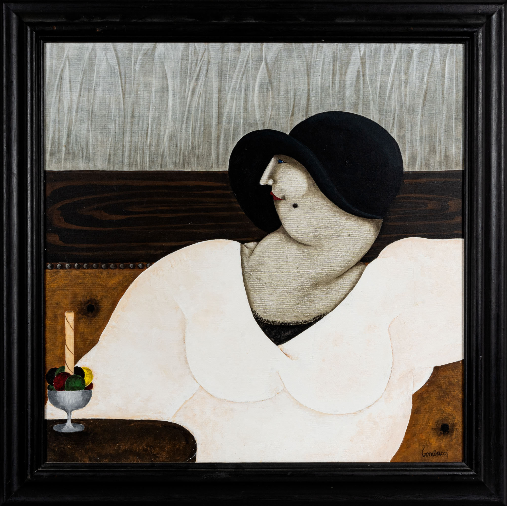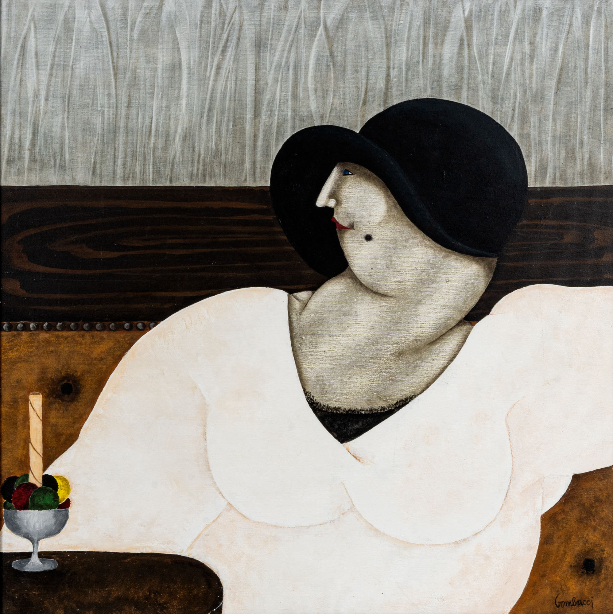 ALICE GOMBACCI(1925 - 2020)Caffè degli specchi 71992Tempera su tela70 x 70 cmFirmata in basso a destraPROVENIENZA:Collezione privata, ComoBIBLIOGRAFIA:F. Cairoli, T. Trini, Alice Gombacci, Electa, Milano, pag. 82 (ill.)