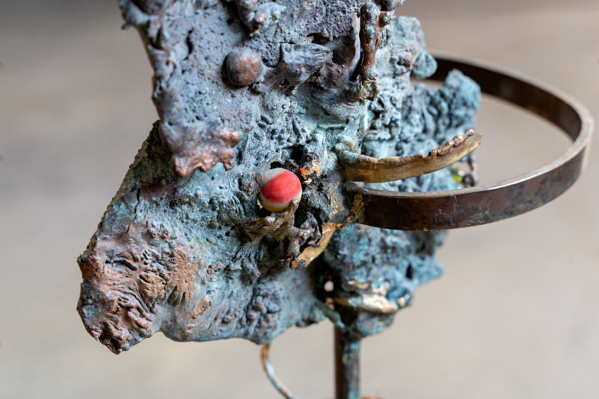 EDGARDO MANNUCCI(1904 - 1986)Senza titolo1968Scultura in rame, ottone e vetro di Murano39 x 16 x 12,5 cm circa (base inclusa)Opera accompagnata da certificato di autenticità a cura dell'erede Barbara D'InceccoPROVENIENZA:Collezione privata, Ancona