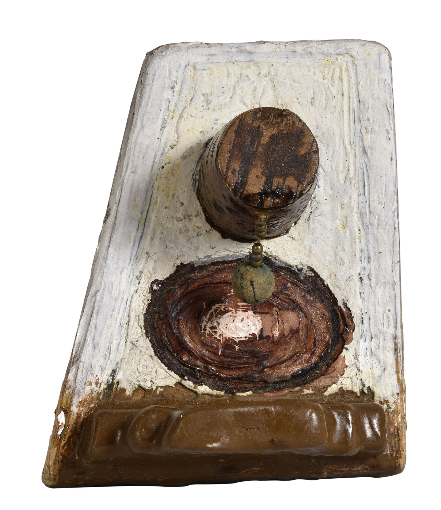 BRUNO CECCOBELLI(1952)Senza titolo1990Tecnica mista e applicazioni su tavola11 x 9 x 6 cmSigla al retroPROVENIENZA:Collezione privata, MilanoESPOSIZIONI:Aprile 1992, Abissa me, Galleria Mosaico Arte Contemporanea, Messina