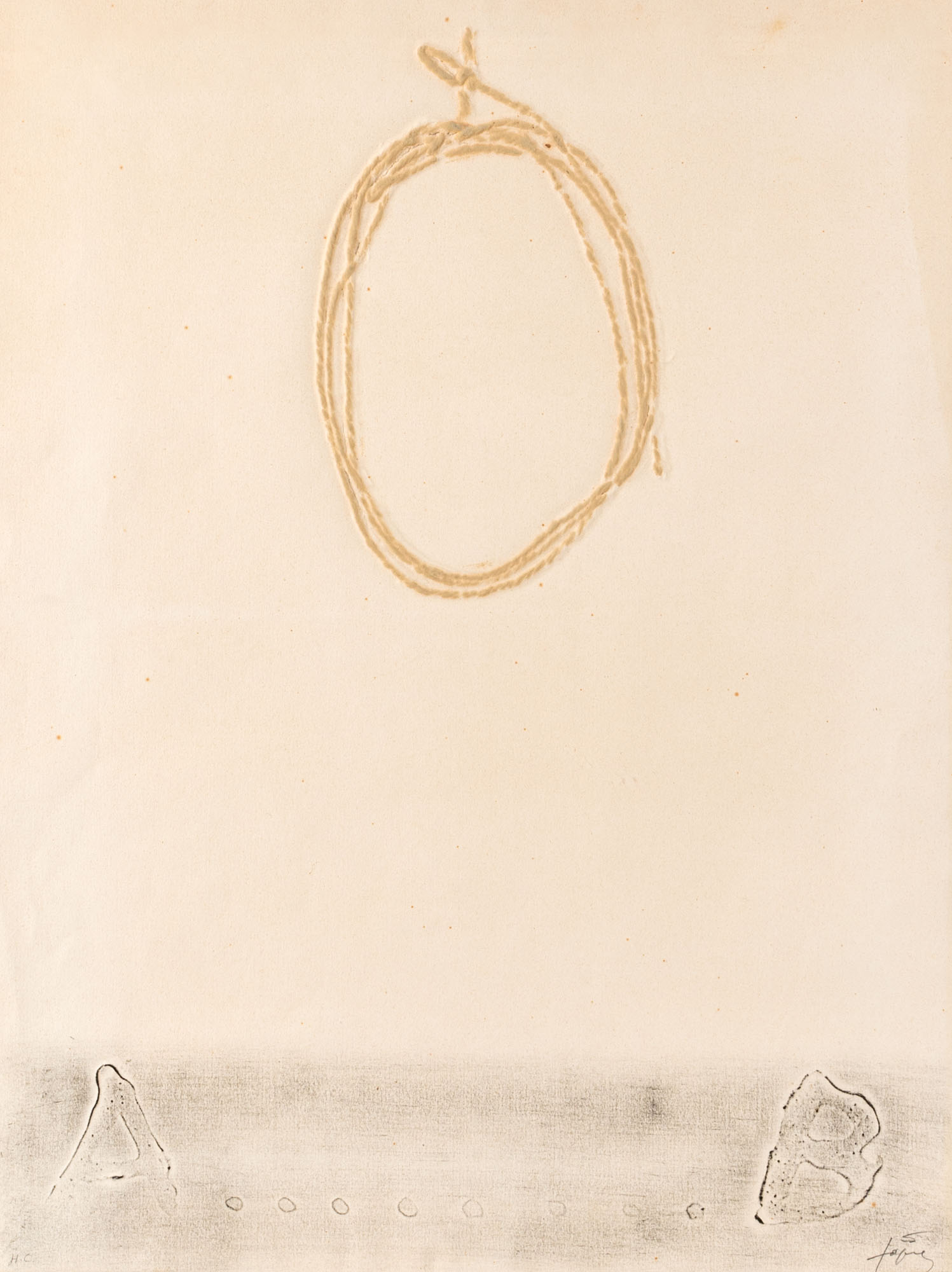 ANTONI TAPIES(1923 - 2012)Cordill1972Acquaforte e incisione carborundum, es. H.C., Editore La Poligrafa, Barcellona77 x 59 cmFirmata a matita in basso a destra e numerata in basso a sinistraPROVENIENZA:Collezione privata, Modena