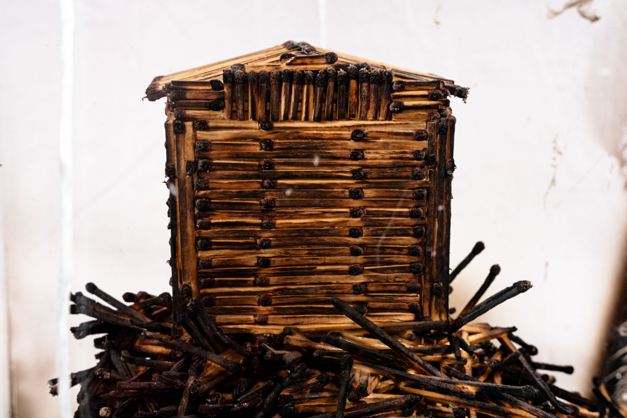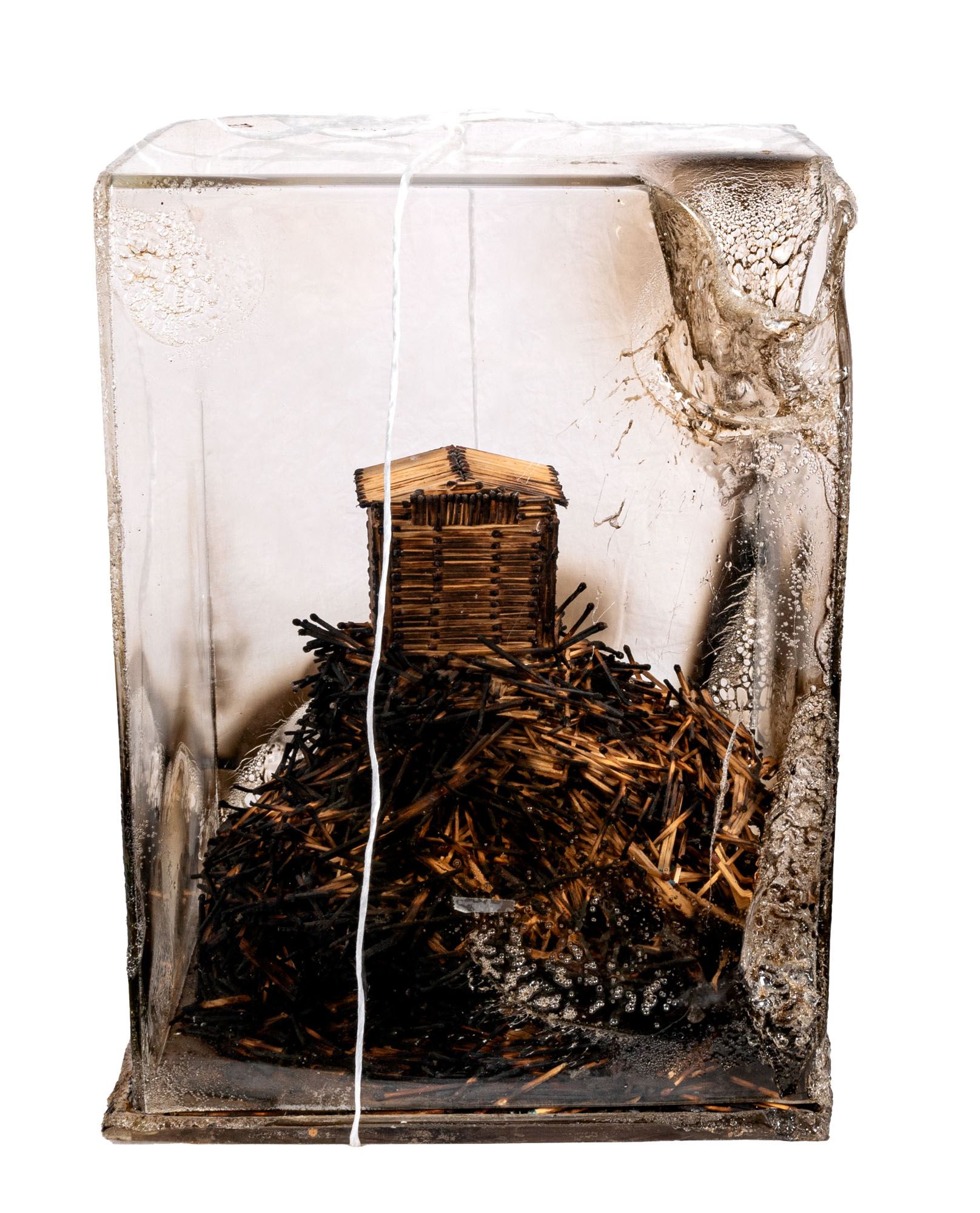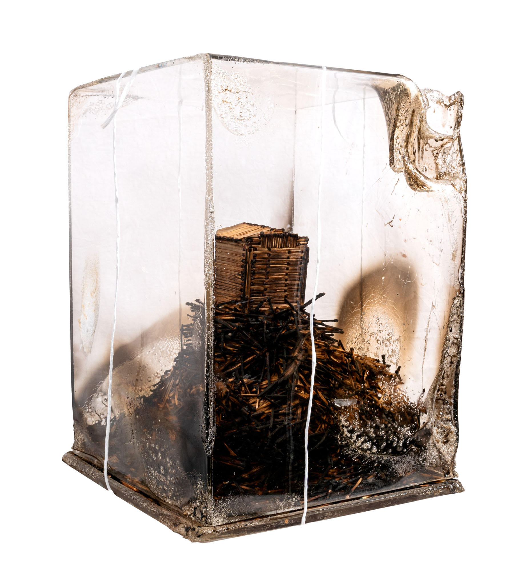 PAMELA GRIGIANTE(1982)Senza titoloScultura composta da fiammiferi bruciati entro teca in plexiglas fusa41 x 30 x 30 cmPROVENIENZA:Collezione privata, Pavia