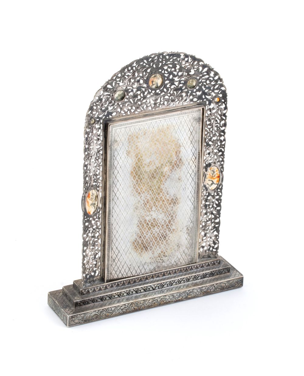 La cornice risulta improntata con il marchio camerale in uso in Italia dal 1935 al 1945 (in questo caso Milano), con le cifre “800” ad indicare il titolo dell’argento 800/1000 e con la scritta “RONCHI MILANO”.