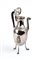 corpo ovoidale liscio poggiante su tre piedini con estremità a zampa ferina e attaccatura superiore con figura femminile affiancata da cornucopie e soprastanti vasi con fiori, collo rastremato con versatoio sagomato e beccuccio zoomorfo. Coperchio incernierato con presa a ghianda, manico in ebano. Argento 950/1000, punzonata con i marchi per l'argento al primo titolo in uso a Parigi dal 1809 al 1819, con il marchio non ufficiale utilizzato dall'Association des Orfévres di Parigi per l'argento al primo titolo di 950/1000 "testa di donna greca con lettera P" e con le iniziali N.X.G. dell'argentiere N. X. Gouilin con bottega in Parigi, 11 Place Thionville.