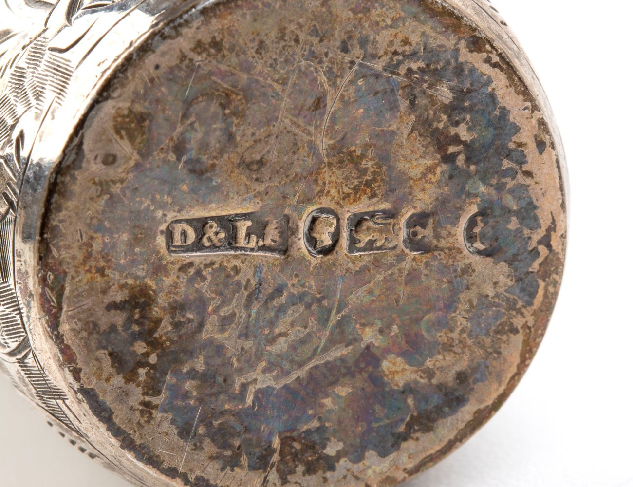 a) Bottiglia per profumo in argento 925/1000, serie completa di marchi Birmingham 1884-1885, argentieri David & Lionel Spiers.