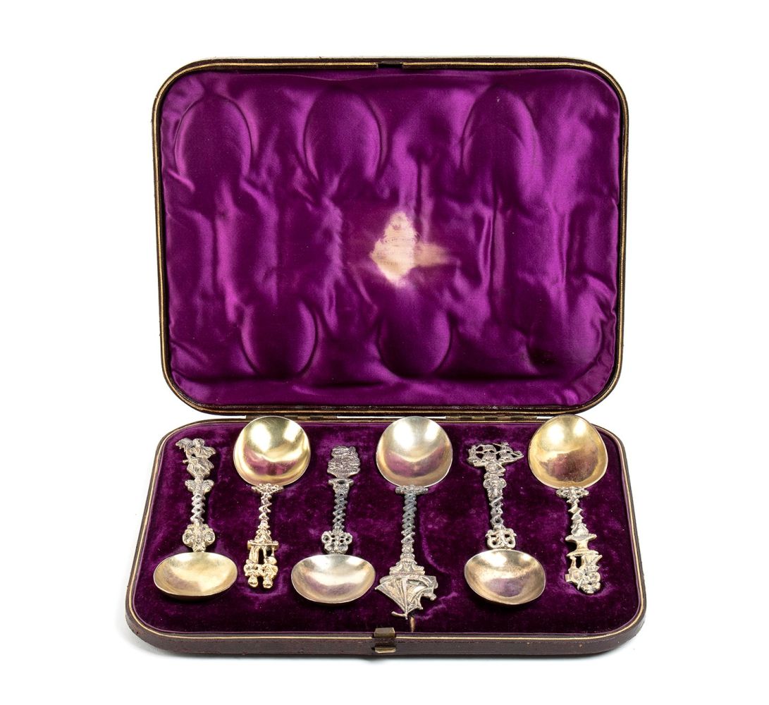 Gruppo di sei cucchiai continentali in argento Nord Europa, probabilmente XIX