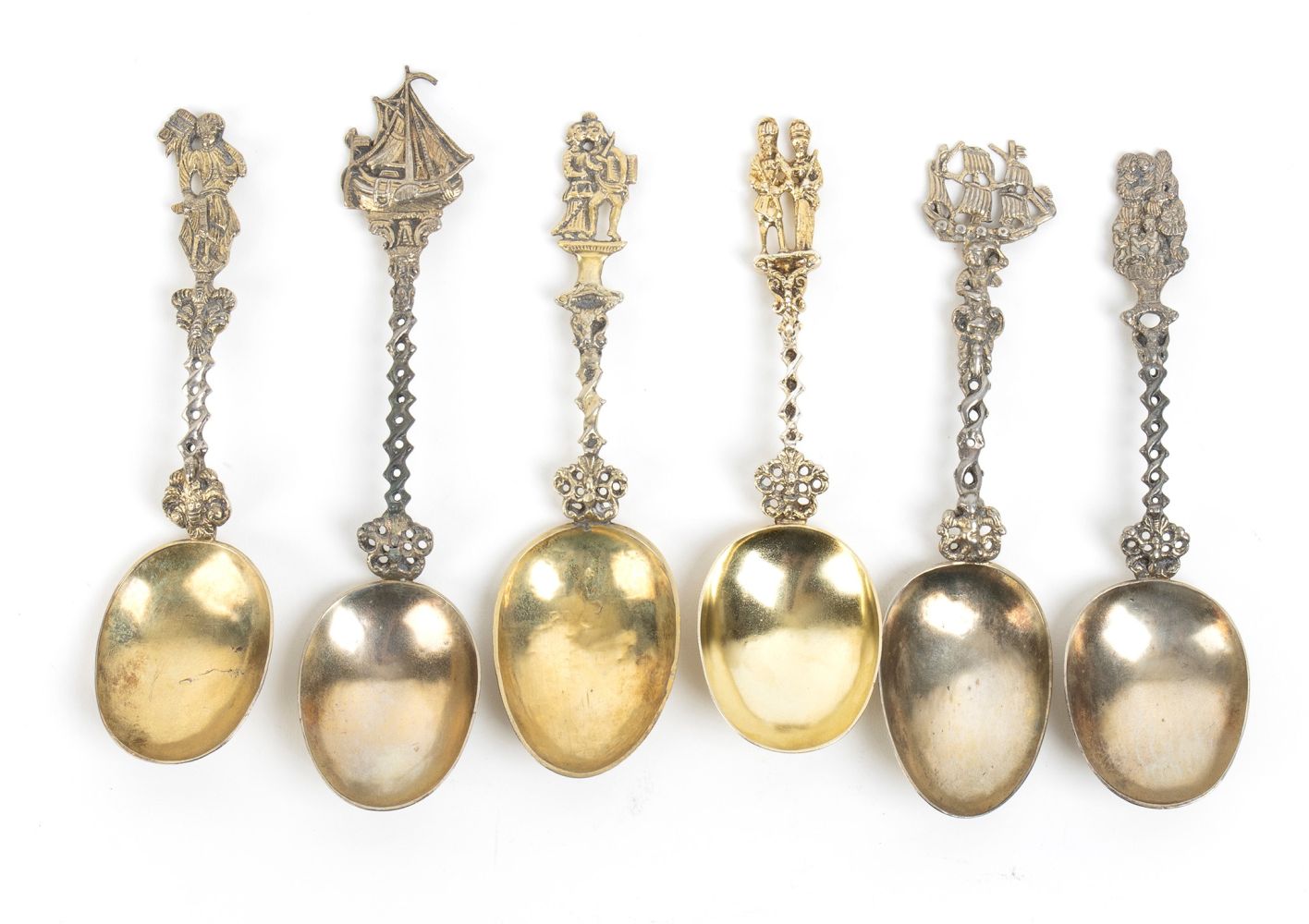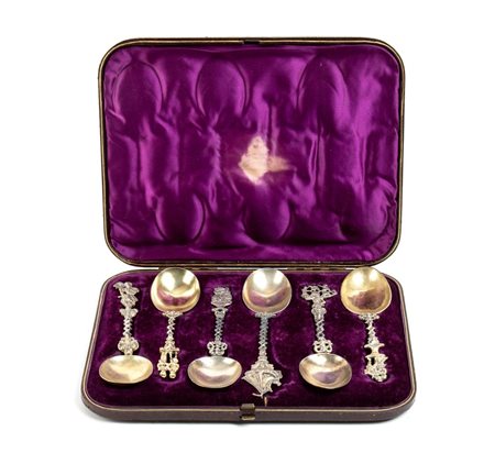 Gruppo di sei cucchiai continentali in argento Nord Europa, probabilmente XIX...