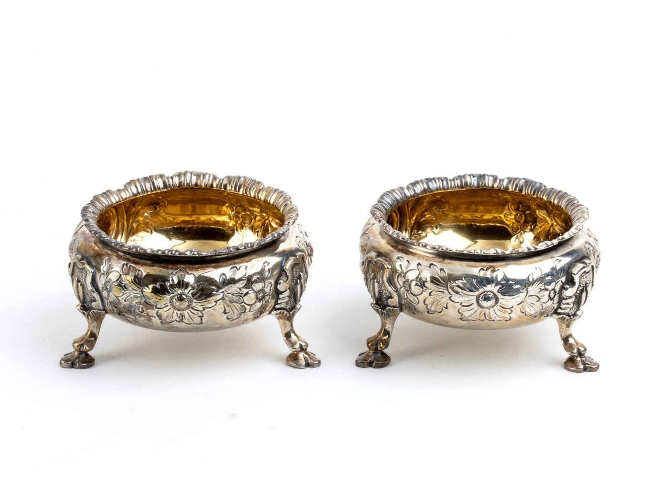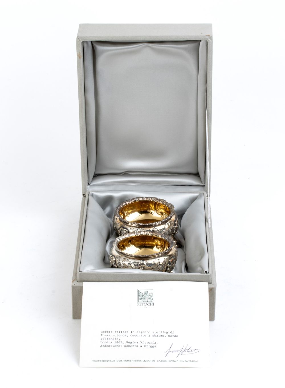 Coppia di saliere vittoriane inglesi in argento Londra 1863-1864