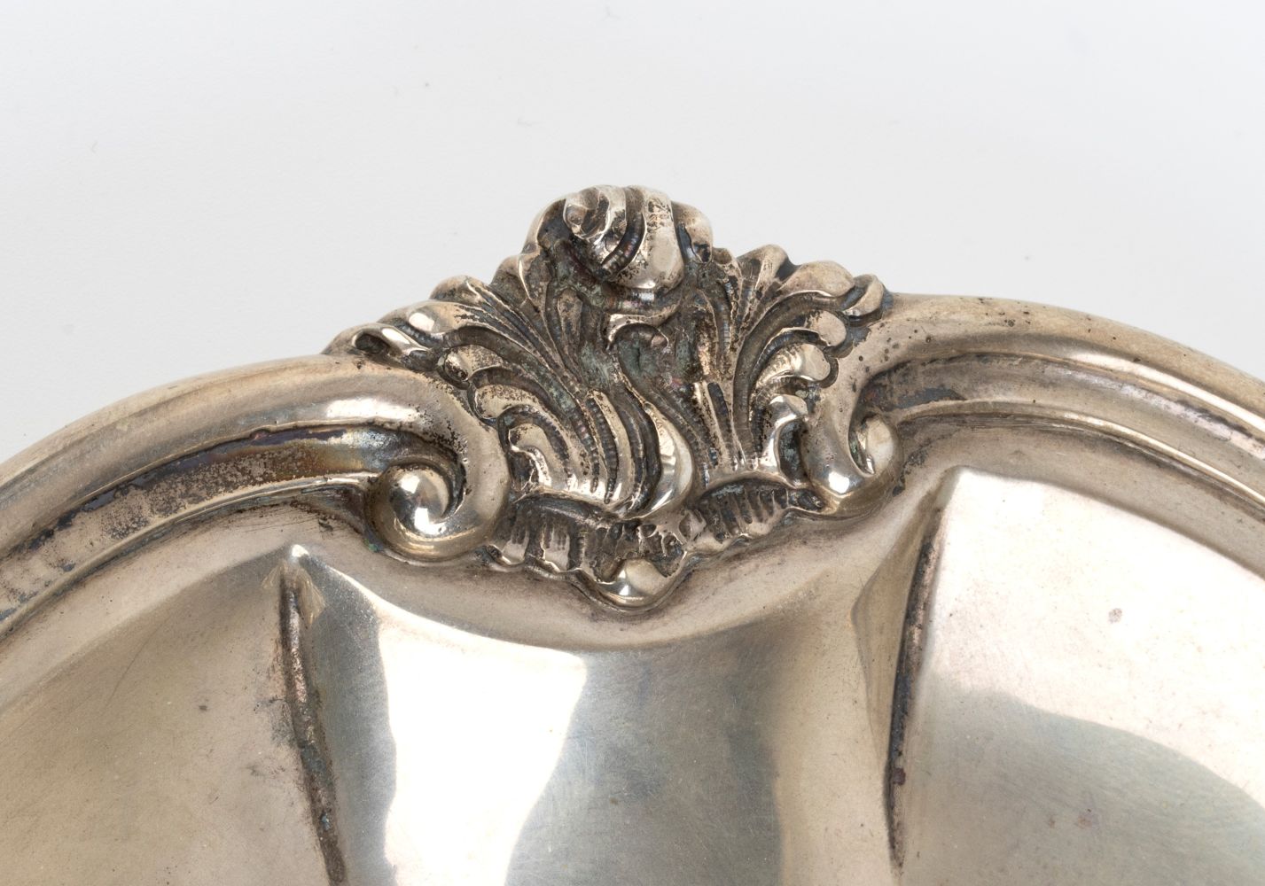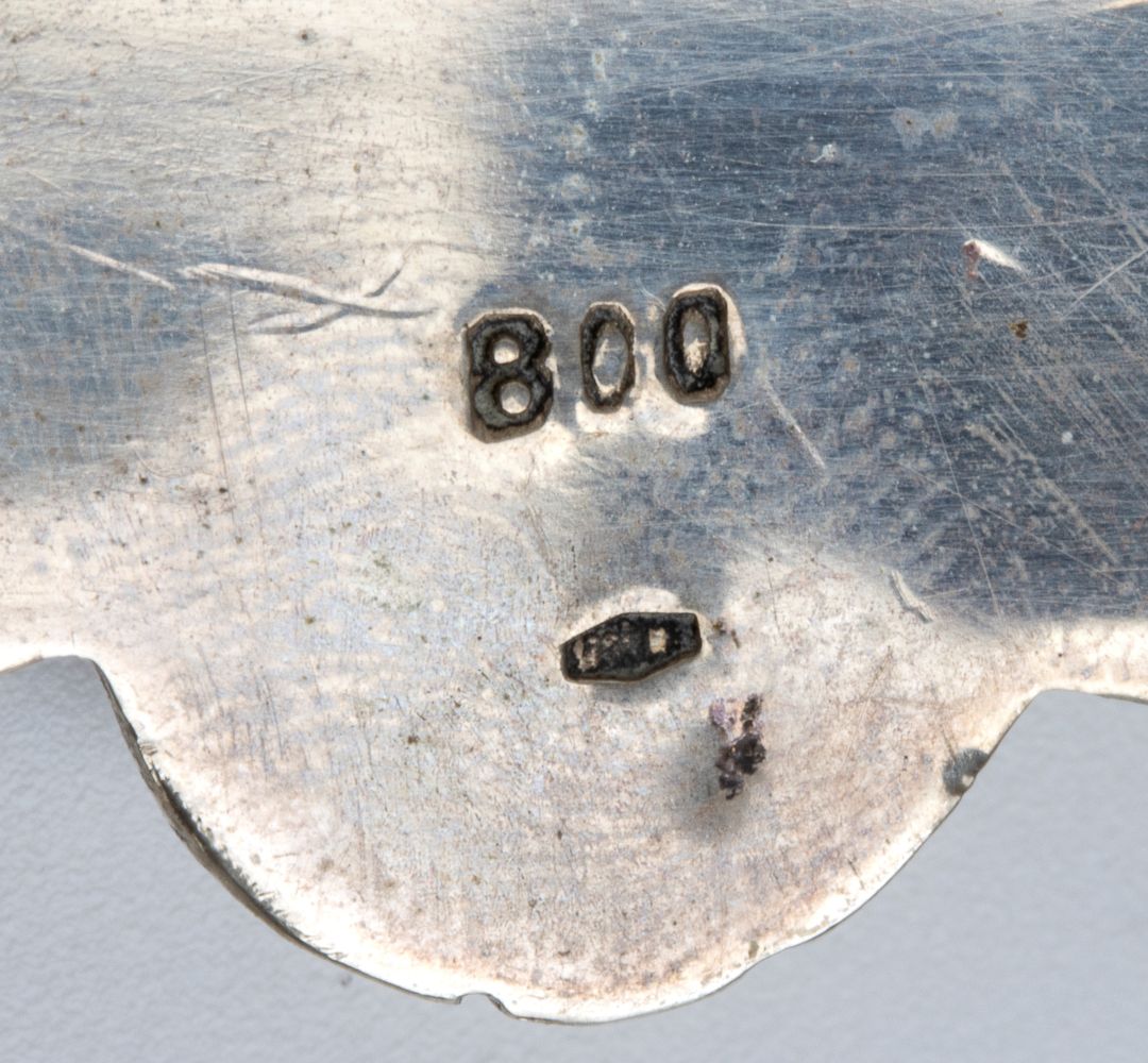 di forma ovale con dettagli vegetali. Argento 800/1000. Punzonato "800".