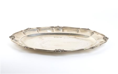 Vassoio italiano in argento Metà XX secolo Dimensioni 48 x 32 cm. Peso 1325...