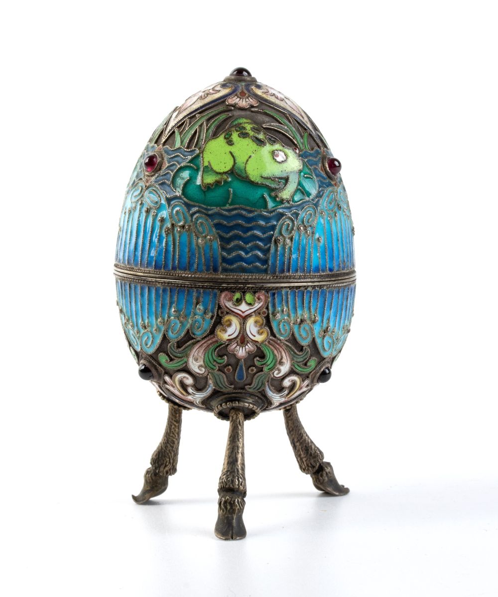 Uovo in argento e smalti cloisonnè Manifattura Russa (?) del XX secolo