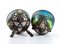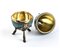 in argento dorato, apribile con chiusura ad innesto, decorato in policromia con rane e fogliame, poggiante su tre piedi a zoccolo animale.