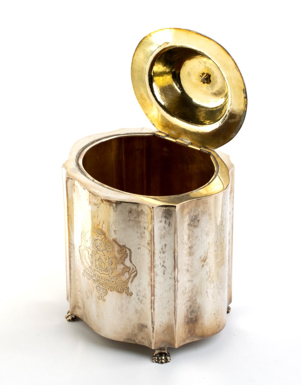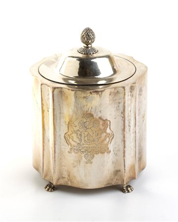 Biscottiera in argento con stemma nobiliare della Worshipful Society of...