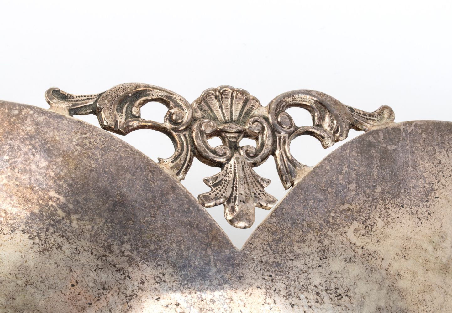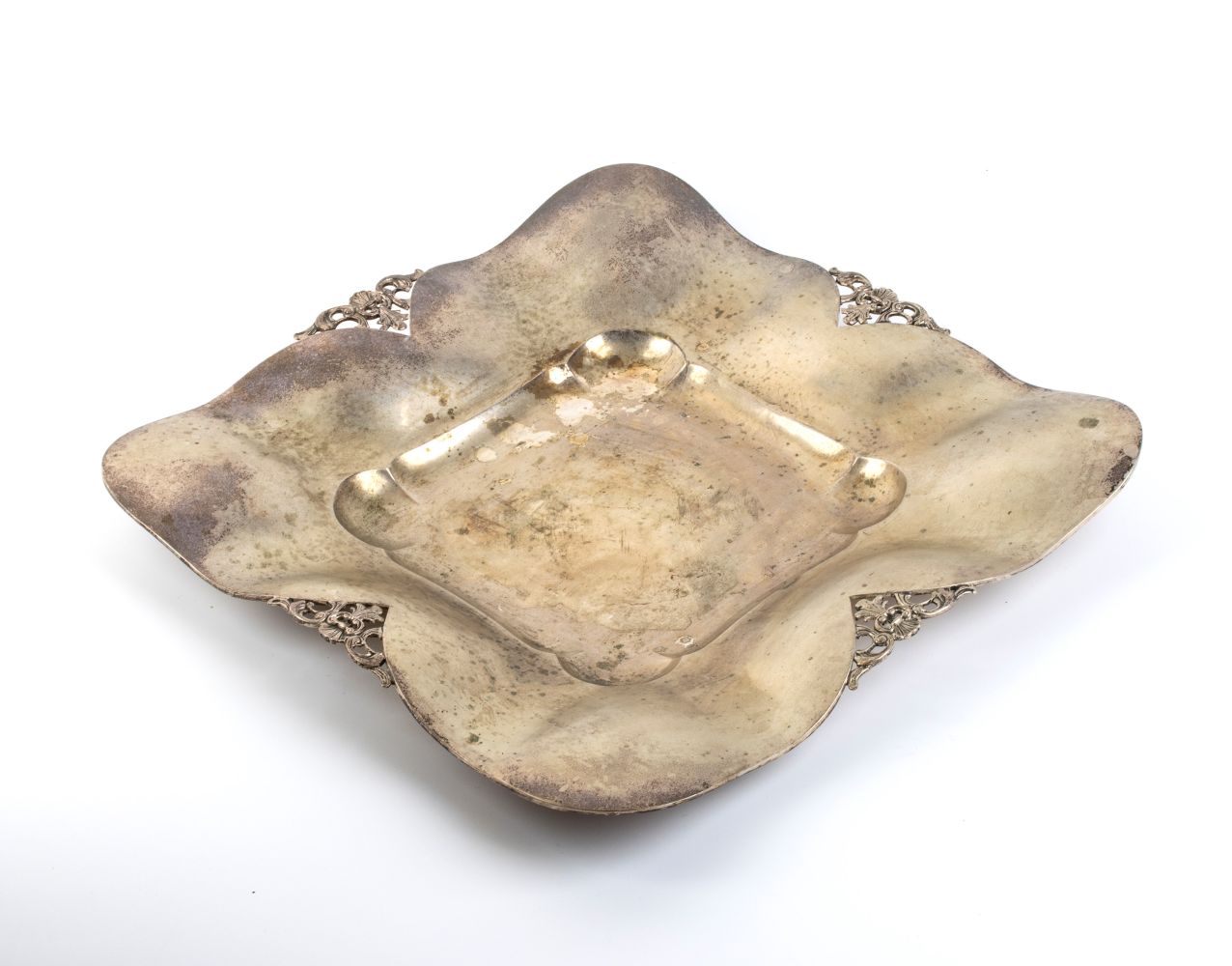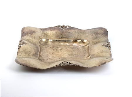 di forma quadrata e ondulata con dettagli fogliati. Argento 800/1000.