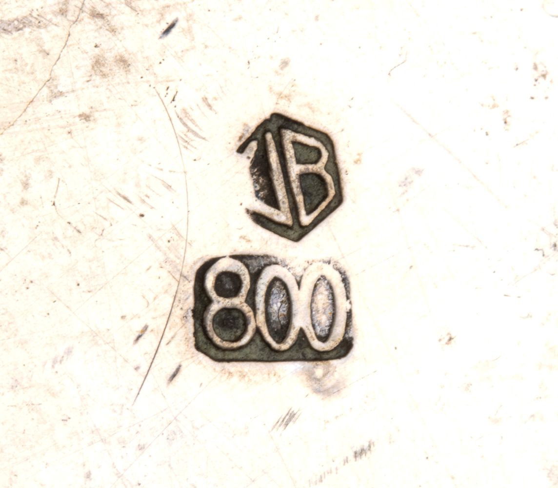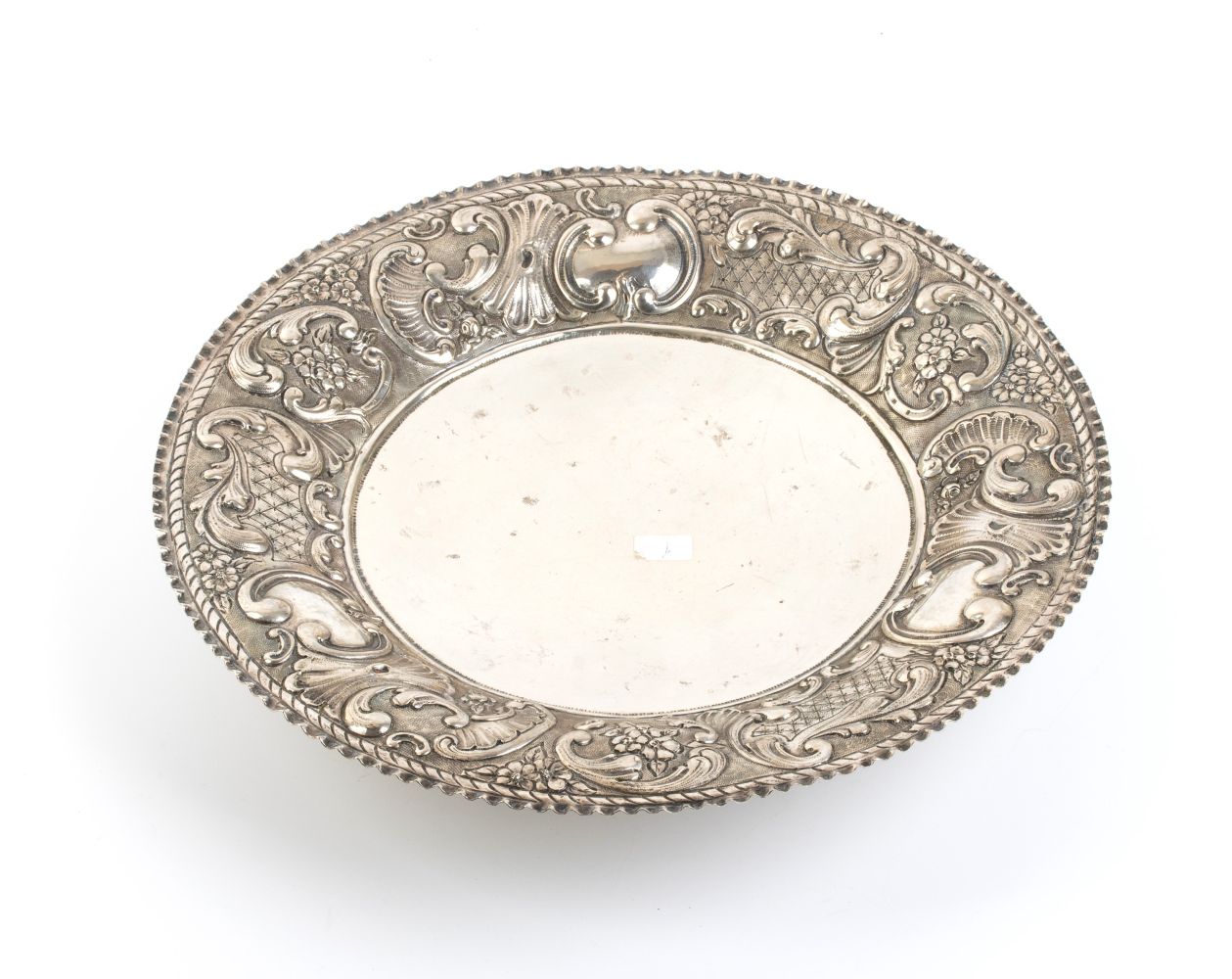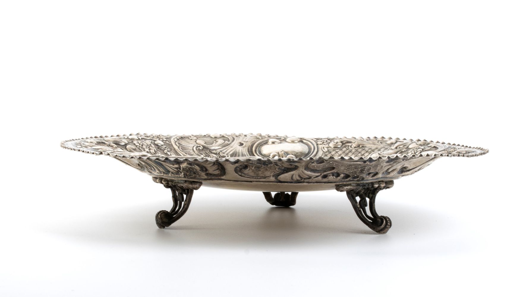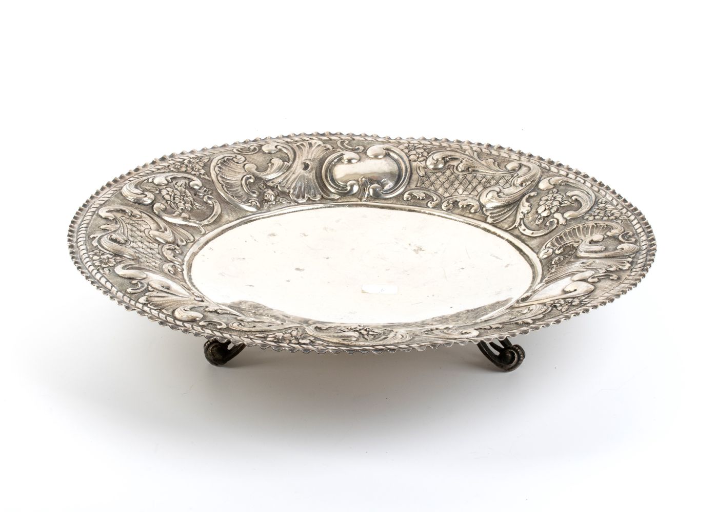 di forma circolare decorato con motivi di foglie e fiori. Argento 800/1000, punzonato "800".