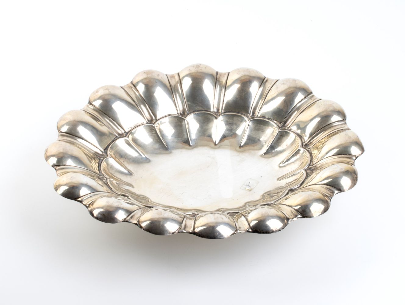 di forma ovale con bordo sagomato. Argento 800/1000, punzonato "800".