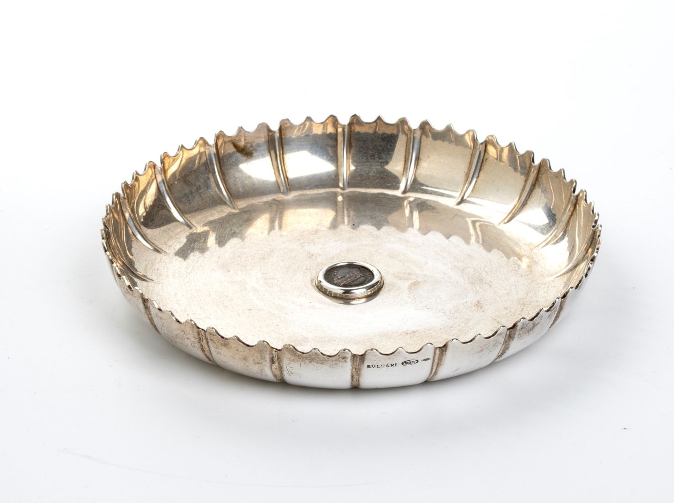 BULGARI Cestino in argento 1996 Diametro x altezza 15,5 x 2,5 cm. Peso 282 gr...