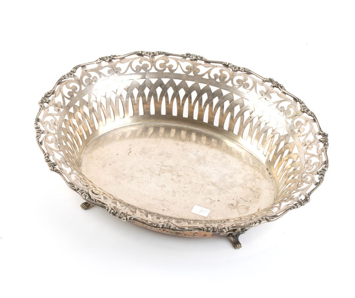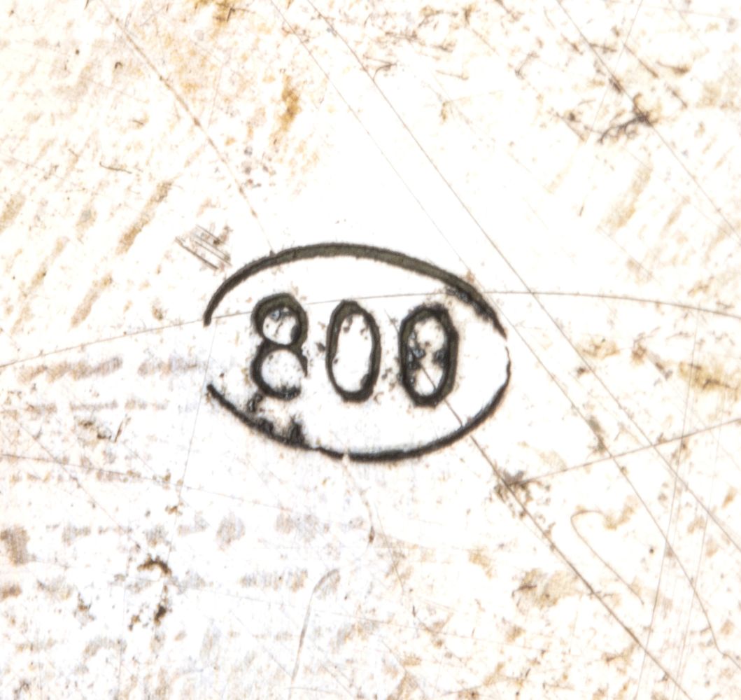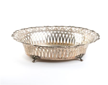 di forma ovale, traforato e decorato con motivi a foglie. Argento 800/1000, punzonato "800".