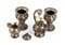 Dimensioni 13 x 12,5 x 9 cm; 13,5 x 7 x 7 cm; 8,5 x 10 x 7 cm; 11,5 x 7 x 7 cm. Peso complessivo 460 gr.