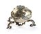 in argento fuso con coperchio ad innesto, decorato con festonii vegetali e una testa femminile, poggiante su un supporto a tripode con volute vegetali.