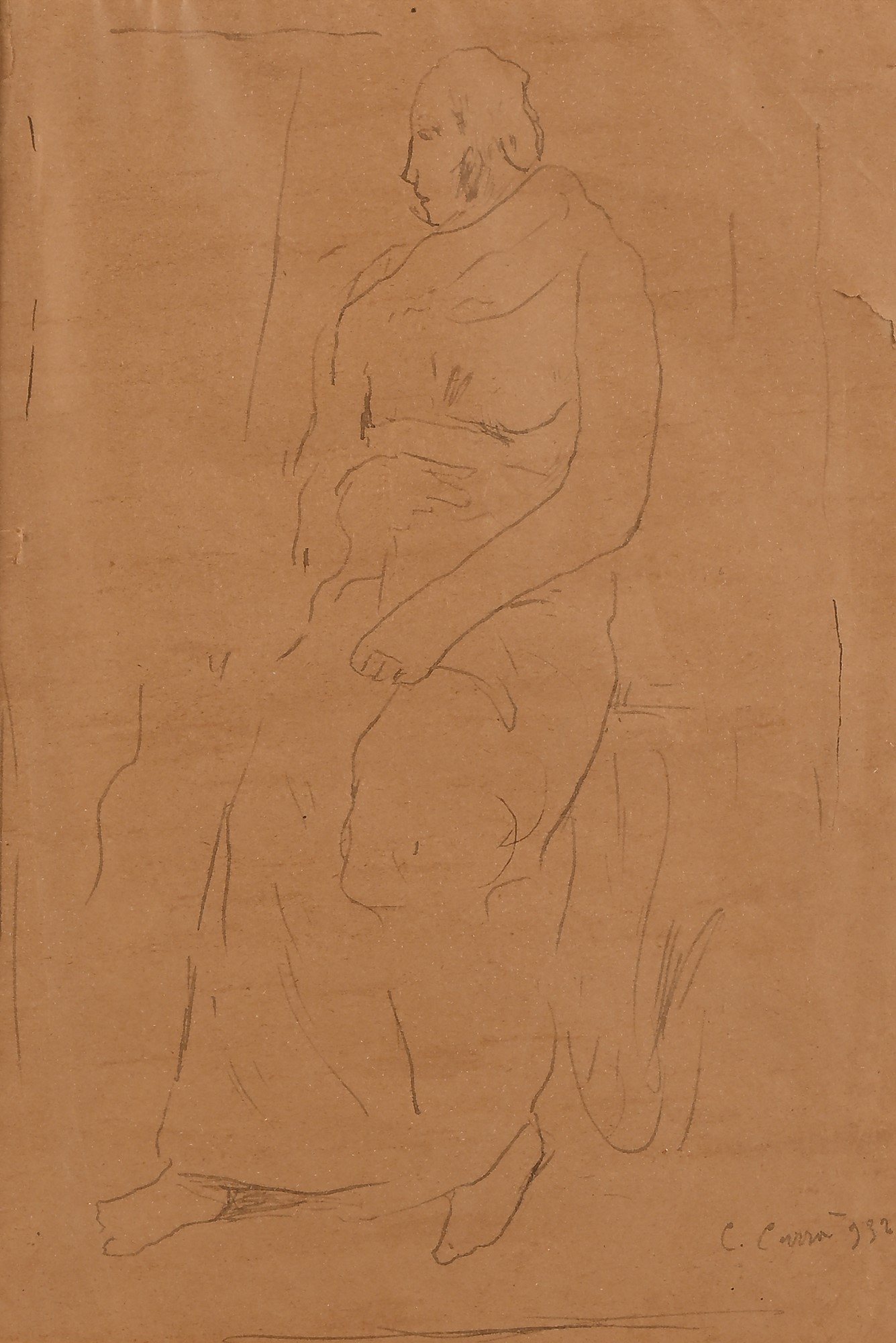 Carlo Carrà Quargnento 1881-Milano 1966 Studio di figura 1932 china su carta...