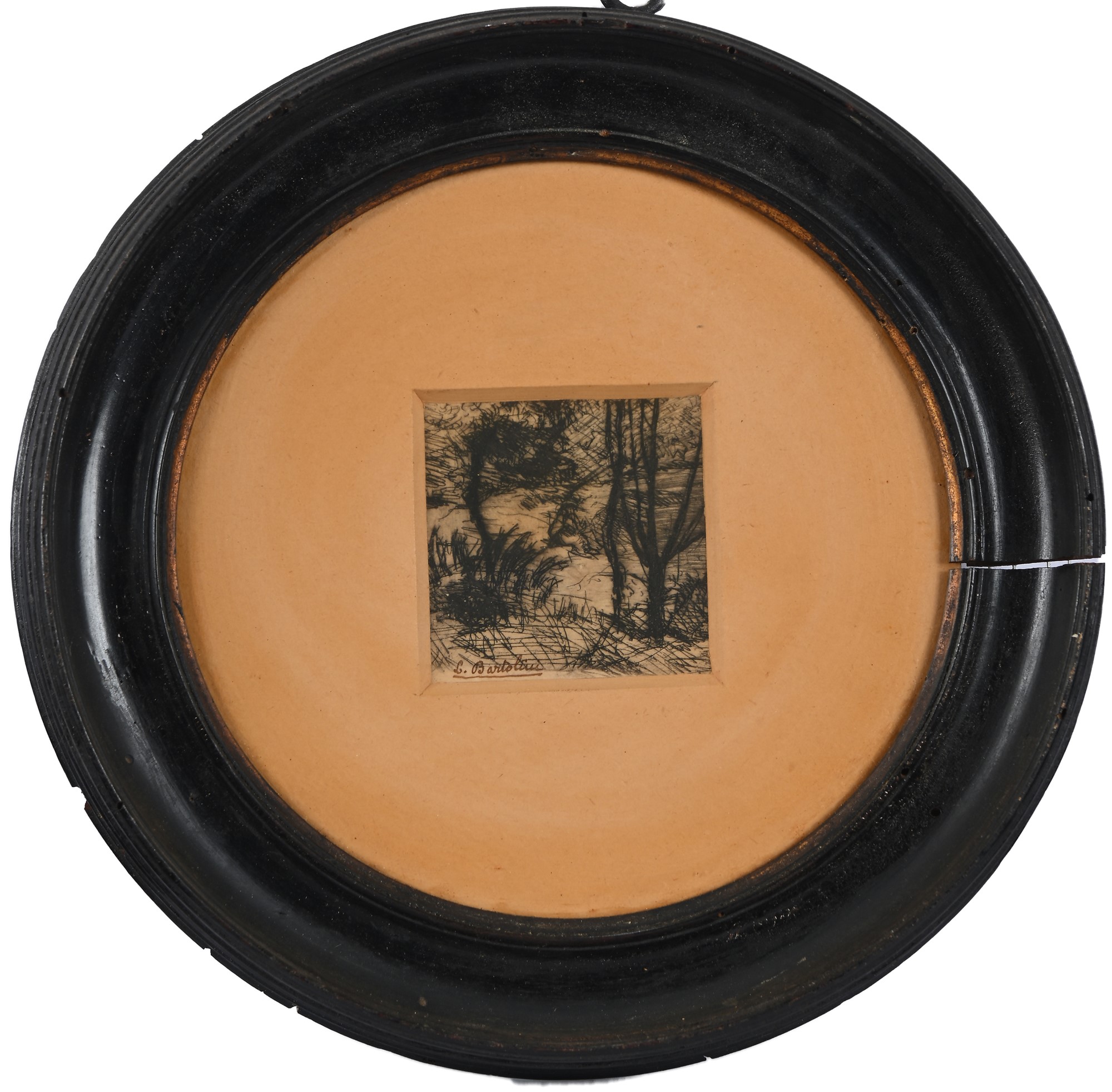 Luigi Bartolini Cupramontana 1892-Roma 1963 Bosco Acquaforte Firma "L. Bartolioni" cm 6,4x6,8 - con cornice diametro cm 25,5